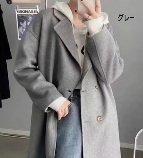 ロングコート レディース アウター 羽織 ウールコート シンプル 無地 襟あり スーツ襟 長袖 フロントボタン ダブルブレスト きれいめ スタイリッシュ エレガント カジュアル お出かけ おしゃれ