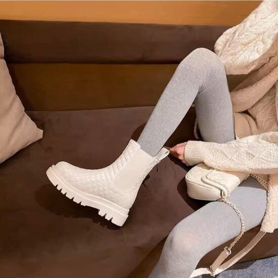 ショートブーツ レディース サイドゴアブーツ キルティング ハーフブーツ 厚底 ミドル 4.5cmヒール 裏起毛 バックファスナー 個性的 ユニーク モード 防寒 かわいい カジュアル おしゃれ