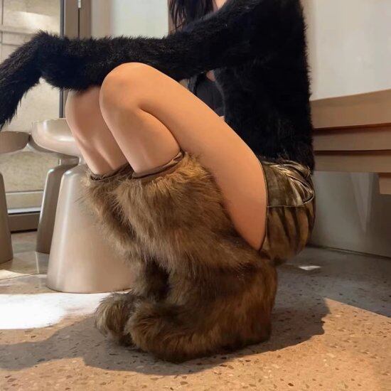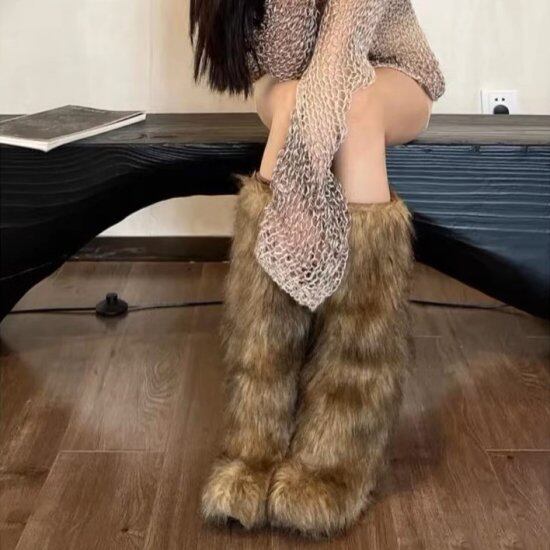 ロングブーツ レディース ファーブーツ 毛皮 ラウンドトゥ ロング ミディアム丈 もこもこ ふわふわ アニマル柄 レトロ 個性的 ユニーク セレブ カジュアル エレガント あたたか 防寒 おしゃれ