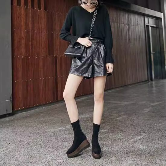 ショートブーツ レディース 厚底ブーツ ウェッジソール スエード スクエアトゥ ハイヒール 8cmヒール バックファスナー スリム フラット カジュアル ストリート 脚長 美脚 厚底 おしゃれ