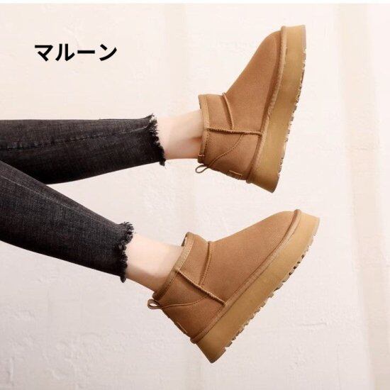 ショートブーツ レディース スエードブーツ 厚底ブーツ ラウンドトゥ ボア フラット ミドルヒール 4cmヒール アンクルブーツ 4color かわいい カジュアル スノーブーツ 脚長 おしゃれ