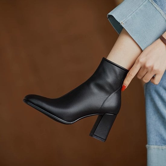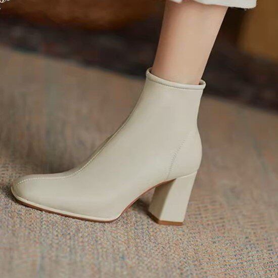 ショートブーツ レディース スクエアトゥ アンクルブーツ ブーティ サイドファスナー 太ヒール チャンキーヒール 5cmヒール きれいめ エレガント 大人 カジュアル オフィス 脚長 美脚 おしゃれ