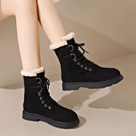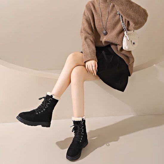 ショートブーツ レディース レースアップブーツ スエードブーツ ラウンドトゥ フェイクレザー フェイクファー 編み上げ ハーフブーツ ローヒール 3cmヒール カジュアル スノーブーツ おしゃれ