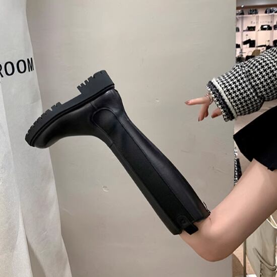 ロングブーツ レディース ブーツ 靴 シューズ 厚底ブーツ ジョッキーブーツ ラウンドトゥ シンプル 無地 カジュアル お出掛け おしゃれ きれいめ スタイリッシュ 美脚 脚長 黒 ブラック スリム