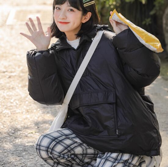 長袖ジャケット レディース アウター プルオーバー フード付き 中綿 フード付き ポケット カジュアル お出かけ おしゃれ アウトドア 厚手 防寒 防風 暖かい ファッション 女性 ブラック ホワイト