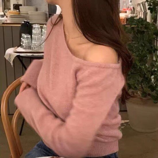 ニットセーター レディース ワンショルダー 長袖 プルオーバー オフショルダー ニット ボートネック セーター ショート丈 レトロ かわいい きれいめ ガーリー カジュアル 2color おしゃれ