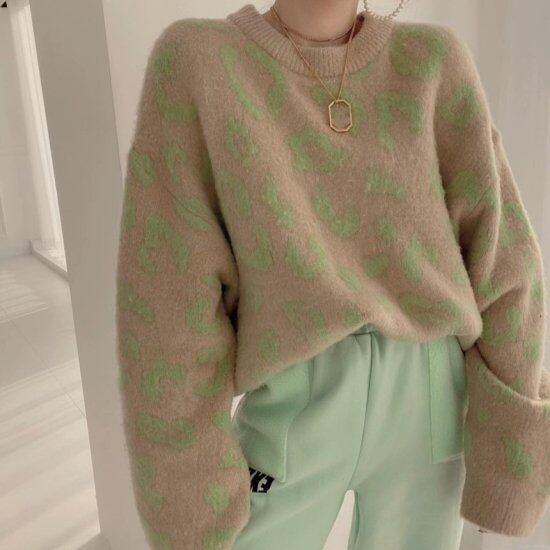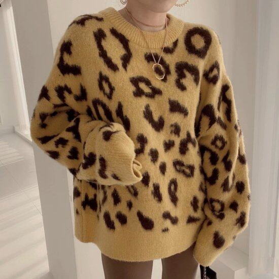 ニットセーター レディース ヒョウ柄 レオパード柄 長袖 ラウンドネック クルーネック オーバーサイズ ゆったり アニマル柄 プルオーバー レトロ 個性的 カジュアル 4color おしゃれ