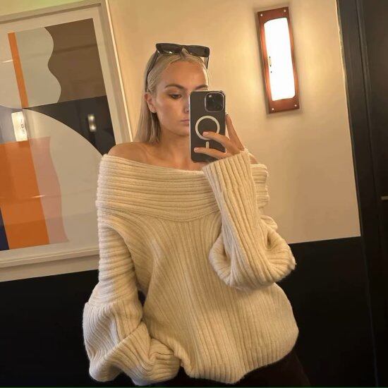 ニットセーター レディース オフショルダー プルオーバー 長袖 オーバーサイズ デザインニット ルーズ 個性的 ユニーク 肩出し 肌見せ ボリューム袖 ゆったり カジュアル セーター おしゃれ
