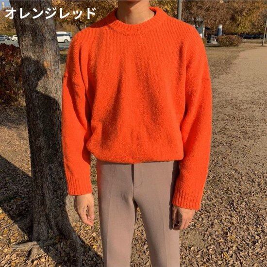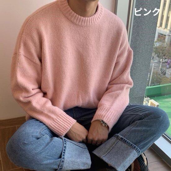 ニットセーター メンズ シンプル 長袖 ラウンドネック ニット プルオーバー ユニセックス マニッシュ メンズライク オーバーサイズ 5color きれいめ カジュアル 無地 セーター おしゃれ