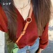 ニットカーディガン レディース Vネック 長袖 ふわふわ くるみボタン セーター 2way レトロ 緑 赤 かわいい きれいめ エレガント カジュアル 2color オフィス おでかけ おしゃれ