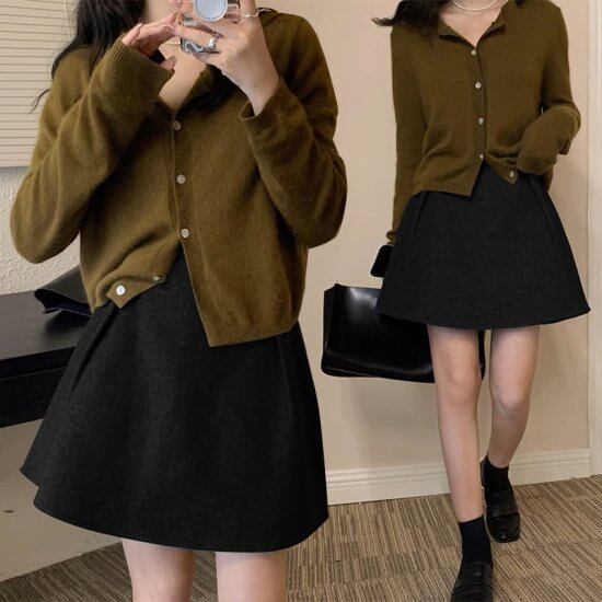 ミニスカート レディース Aライン 台形スカート ミニ丈 ショート丈 ウールライク フレア パフスカート レトロ 無地 インナー付き かわいい ガーリー 4color おでかけ デート おしゃれ