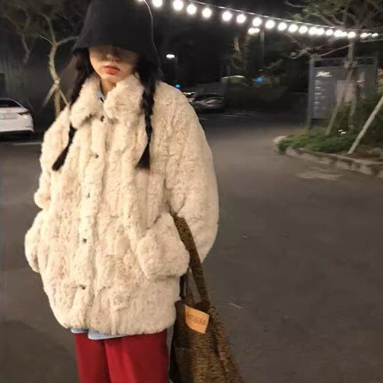 ファージャケット レディース ファーコート フェイクファー 長袖 襟付き ミディアム丈 モコモコ ふわふわ ゆったり ポケット レトロ かわいい ガーリー カジュアル あたたか 防寒 おしゃれ