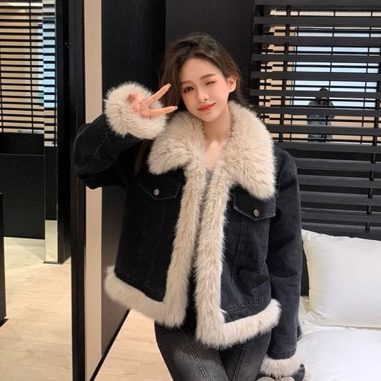 デニムジャケット レディース ファー付き デニムコート 中綿 長袖 ビッグカラー 襟付き ブルゾン オーバーサイズ ユニセックス かわいい ガーリー カジュアル 防寒 おでかけ デート おしゃれ