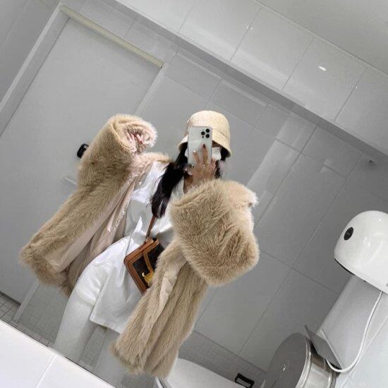ファーコート レディース ショートコート フェイクファー エコファー 長袖 テーラードカラー ガウンコート ボリューム オーバーサイズ かわいい ガーリー きれいめ カジュアル レトロ おしゃれ