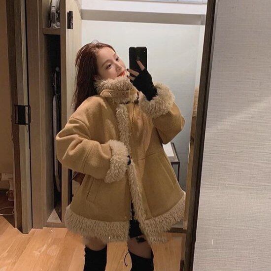 ショートコート レディース ボアコート ジャケット スタンドカラー 長袖 ライダースジャケット ミディアム丈 ゆったり レトロ ブラウン きれいめ カジュアル おでかけ オフィス ボア おしゃれ