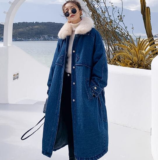 ロングコート レディース アウター 羽織 デニムコート コート ロング丈 襟あり ファー襟 ふわふわ フロントボタン カジュアル お出かけ おしゃれ ウエストベルト 裏ボア 暖かい 厚手 冬 ポケット