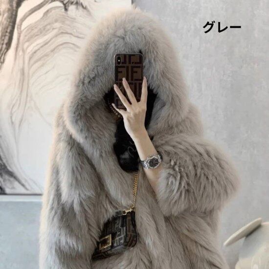 ファーコート レディース フード付き フェイクファー エコファー ショート ミディアム ボリューム オーバーサイズ 豪華 きれいめ ガーリー エレガント カジュアル 毛皮 3color おしゃれ