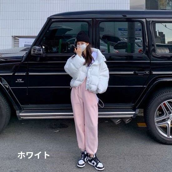 ダウンジャケット レディース ショートジャケット スタンドカラー 長袖 ボタン ショート丈 クロップド丈 ルーズ レトロ きれいめ かわいい ガーリー カジュアル おでかけ 2color おしゃれ