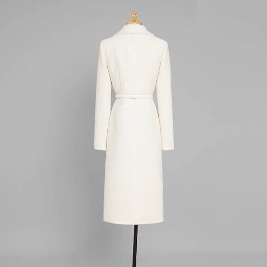 ワンピース レディース ドレスコート ツイード Vネック 長袖 テーラードカラー スーツ襟 ボタン フリンジ ベルト レトロ クラシカル きれいめ エレガント 上品 おでかけ パーティー おしゃれ