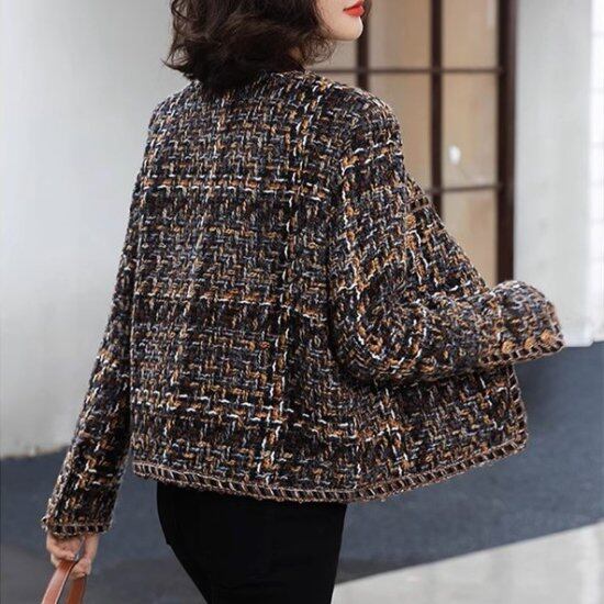 ツイードジャケット レディース ノーカラージャケット ラウンドネック 長袖 ミックスツイード ショートジャケット レトロ クラシカル きれいめ 上品 エレガント カジュアル オケージョン おしゃれ