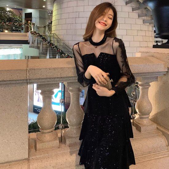 パーティードレス レディース 結婚式ドレス 演奏会ドレス ティアードスカート レース ラウンドネック シアースリーブ 透け感 Aライン ロング ワンピース エレガント 謝恩会 披露宴 おしゃれ