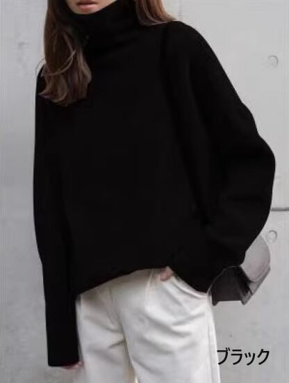 ニットセーター レディース トップス タートルネック ニット セーター ゆったり ルーズシルエット 長袖 シンプル 無地 秋冬 暖かい カジュアル お出かけ おしゃれ ベーシック 定番 厚手 女性