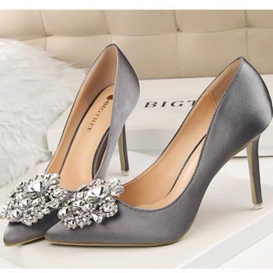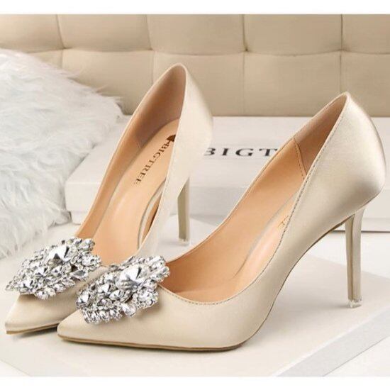 パンプス レディース ビジュー サテン ポインテッドトゥ ハイヒール 10cmヒール ピンヒール キラキラ きれいめ エレガント 華やか 7color 結婚式 演奏会 謝恩会 パーティー おしゃれ