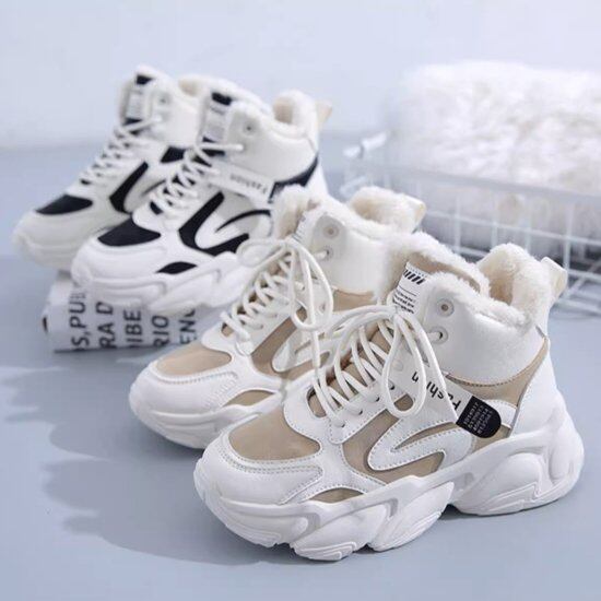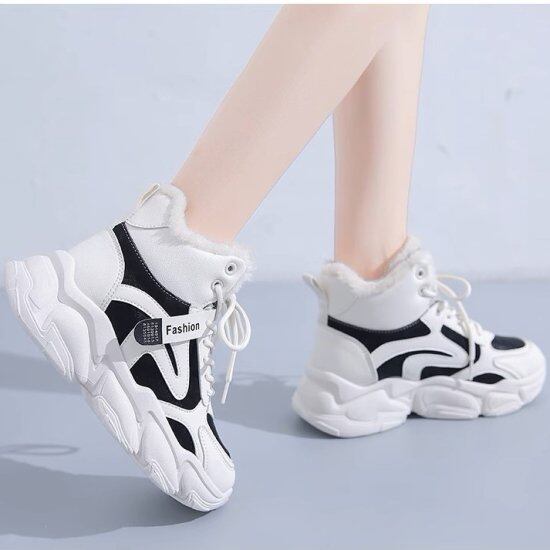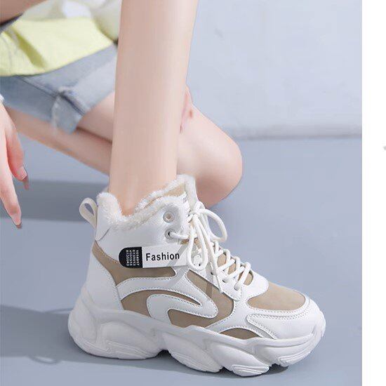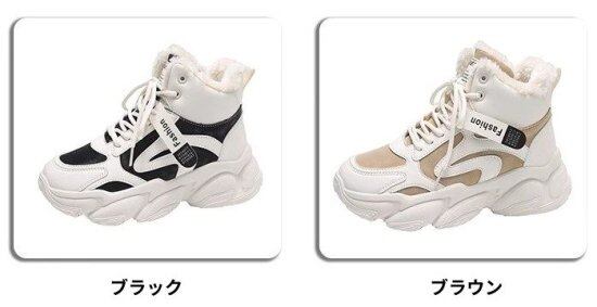 スニーカー レディース ハイカット ファー 裏ボア フェイクレザー エコレザー ボリューム ソール 5.5cmヒール スポーティー 2color カジュアル 美脚 脚長 ストリート 防寒 おしゃれ