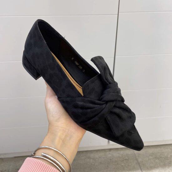 パンプス レディース リボン フラットシューズ ローヒール 3cmヒール 太めヒール ポインテッドトゥ フェイクレザー エコレザー ツイスト 個性的 ユニーク 4color カジュアル おしゃれ