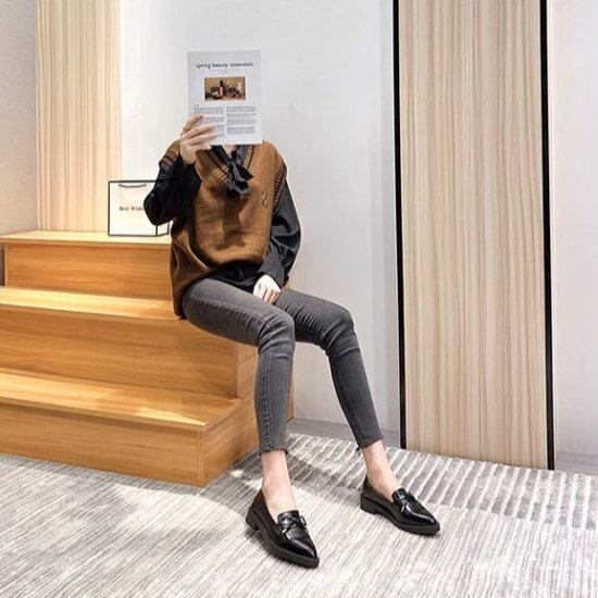 ローファー レディース ポインテッドトゥ リボン タッセル スリッポン ローヒール 3.5cmヒール マニッシュ メンズライク レトロ クラシカル きれいめ カジュアル フェイクレザー おしゃれ