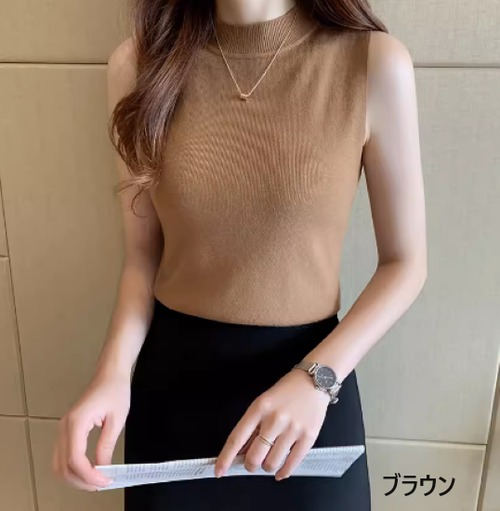 ニットタンクトップ レディース トップス ニットベスト ノースリーブ シンプル 無地 インナー ハーフタートルネック スリムフィット カジュアル お出かけ おしゃれ きれいめ 定番 ベーシック 女性