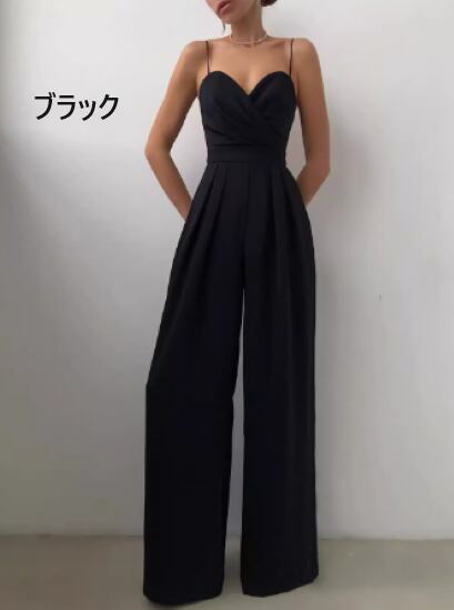 パンツドレス レディース ジャンプスーツ チューブトップ パーティードレス ワイドパンツ ハイウエスト サスペンダー 結婚式ドレス 演奏会ドレス シンプル 無地 きれいめ エレガント お呼ばれ 二次会