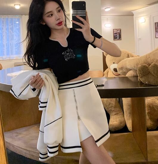 セットアップ レディース 2点セット 上下セット ツーピース トップス ジャケット 羽織 長袖 ベースボールジャケット ボトムス ミニスカート ショート丈 カジュアル お出かけ おしゃれ バイカラー