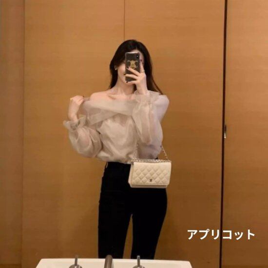 シアーブラウス レディース オフショルダー シャツ プルオーバー シースルー 長袖 ボリューム袖 ランタンスリーブ パフスリーブ エレガント セクシー 2color お呼ばれ パーティー おしゃれ
