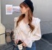 シフォンブラウス レディース トップス シフォンシャツ 長袖ブラウス Vネック フリル クロスデザイン フェミニン ガーリー 可愛い カジュアル お出かけ おしゃれ キャンディスリーブ 春夏 女性