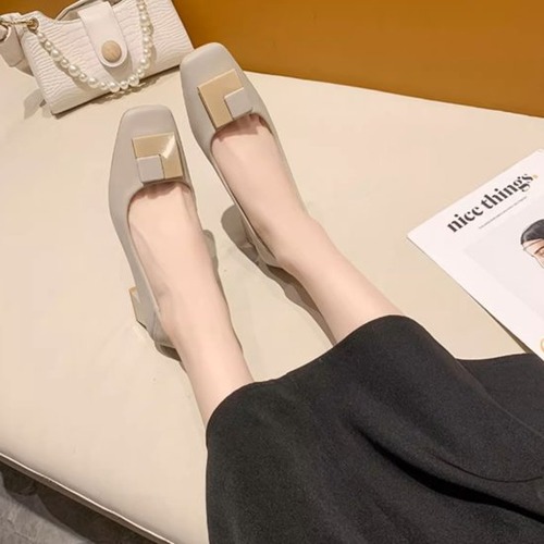 パンプス レディース バックル スクエアトゥ フェイクレザー エコレザー 太ヒール ローヒール 4.5cmヒール チャンキーヒール シンプル 2color きれいめ カジュアル オフィス おしゃれ