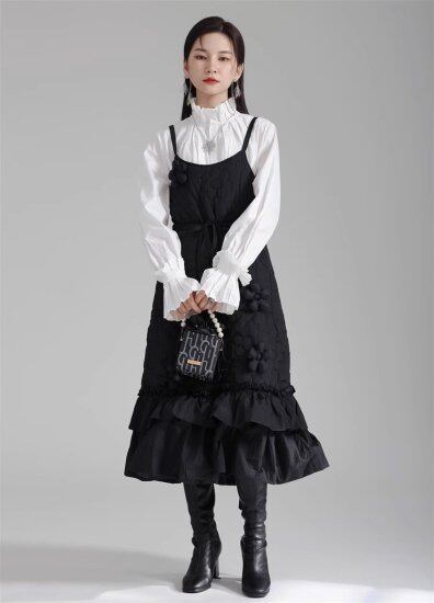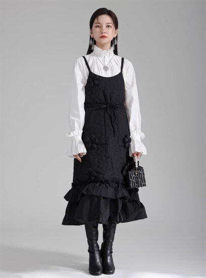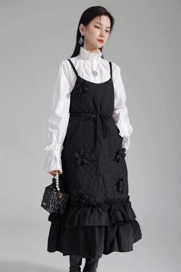 ワンピース レディース キャミソールワンピース フリル 花柄 フラワーモチーフ立体的 キルティング サスペンダー キャミワンピ 個性的 ユニーク Aライン リボン かわいい ガーリー おしゃれ
