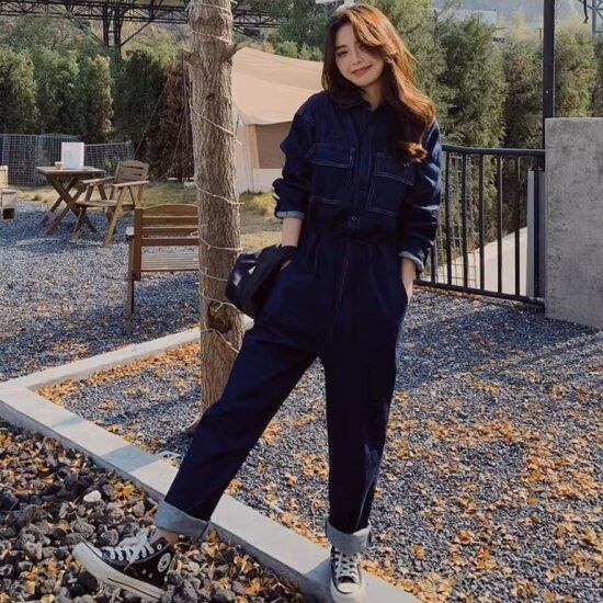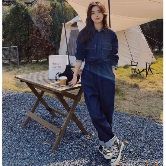 オールインワン レディース デニム 長袖 ジャンプスーツ つなぎ ジーンズ ハイウエスト ワイドパンツ ストレートパンツ ポケット カジュアル オーバーオール サロペット デニムパンツ おしゃれ