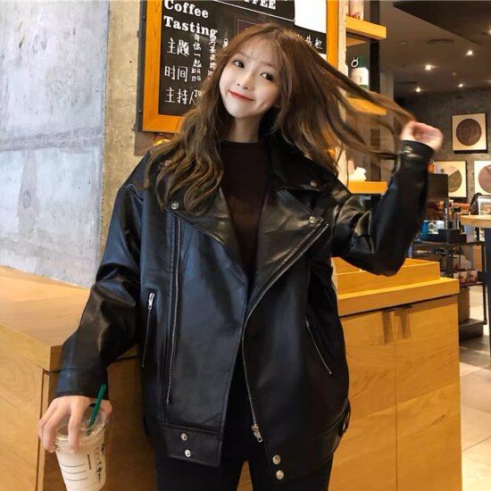 レザージャケット レディース ライダースジャケット 長袖 ファスナー 襟付き フェイクレザー エコレザー オーバーサイズ ミディアム丈 クール ユニセックス かっこいい カジュアル おしゃれ