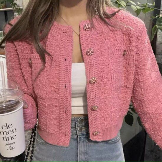 ショートジャケット レディース カーディガン 長袖 ラウンドネック クルーネック ボタン シングルブレスト ショート丈 クロップド丈 4color きれいめ エレガント カジュアル おしゃれ