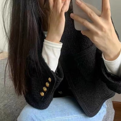 ツイードジャケット レディース ノーカラージャケット 長袖 ボタン シングルブレスト ラウンドネック ショートジャケット シンプル エレガント 入学式 卒業式 セレモニー フォーマル おしゃれ