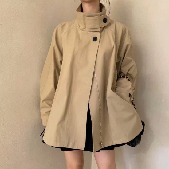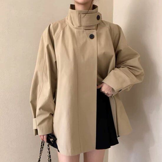 ショートコート レディース ウィンドブレーカー ジャケット 長袖 スタンドカラー フレア ボリューム袖 ライトコート 2color レトロ クラシカル きれいめ カジュアル オフィス おしゃれ