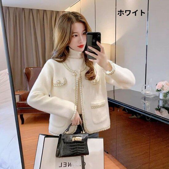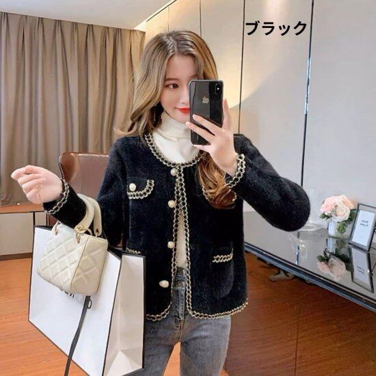 ノーカラージャケット レディース パイピング 長袖 ジャケット パールボタン ショートジャケット もこもこ ふわふわ きれいめ エレガント 上品 カジュアル フェミニン オフィス おでかけ おしゃれ