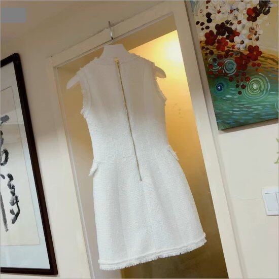 ミニワンピース レディース Vネック ノースリーブワンピース ボタン ミニ丈 ダブルブレスト フリンジ Aライン ベスト ジレ 金ボタン レトロ クラシカル かわいい セクシー きれいめ おしゃれ