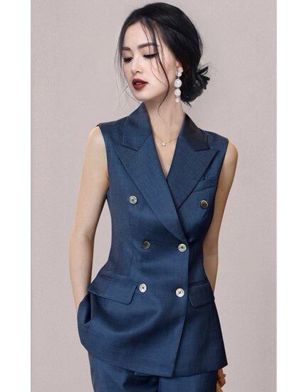 セットアップ レディース パンツスーツ ベスト ノースリーブ テーラードカラー ダブルブレスト ジレ クロップドパンツ アンクルパンツ スリム きれいめ シャープ オフィス 上下セット おしゃれ