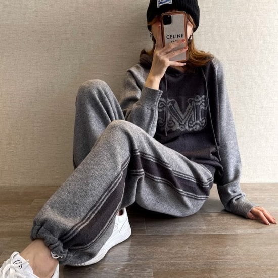 セットアップ レディース ニット ニットパーカー 長袖 フード プルオーバー ニットパンツ 裾絞り 上下セット ニットアップ カジュアル スポーティー バイカラー 2点セット ストリート おしゃれ