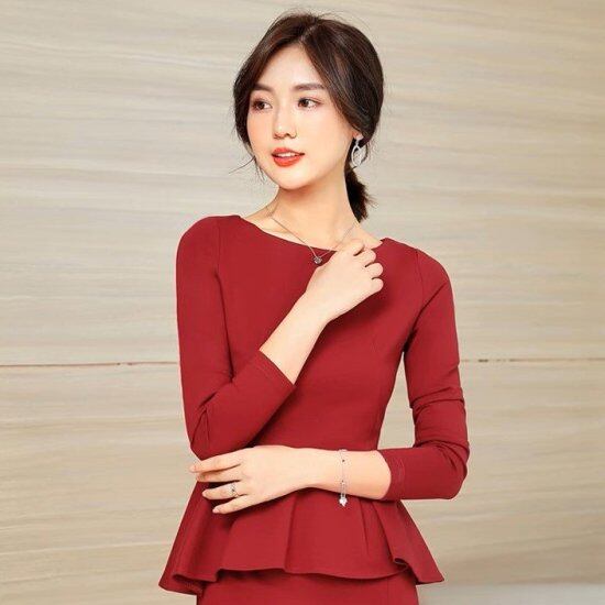 長袖ワンピース レディース ペプラム タイトワンピース ひざ丈 ミディアム丈 ラウンドネック スリム タイト エレガント 上品 きれいめ セレモニー 入学式 卒業式 入園式 卒園式 おしゃれ