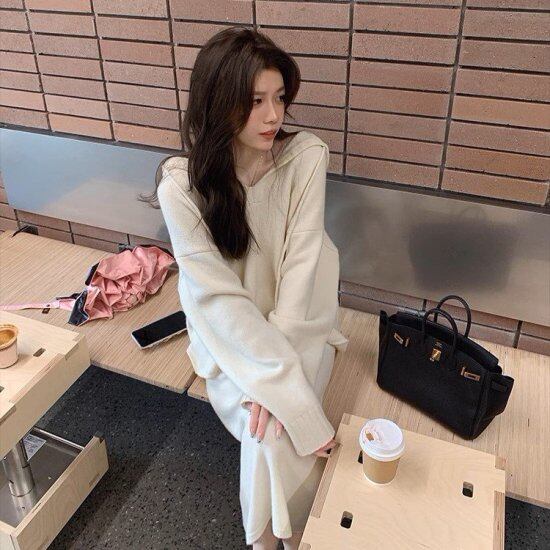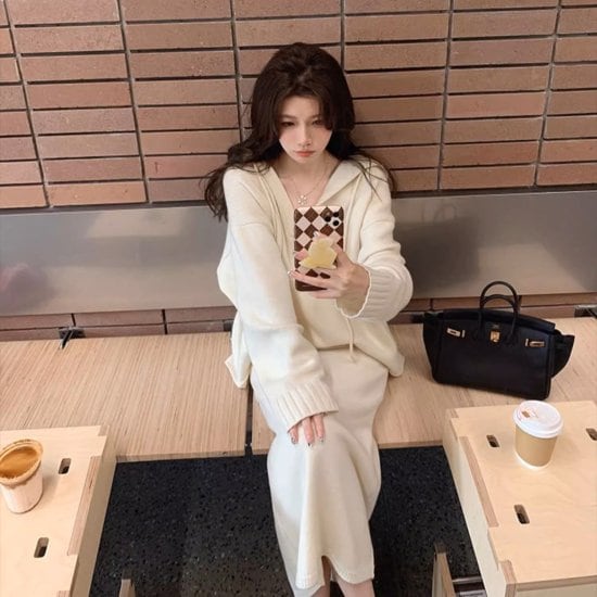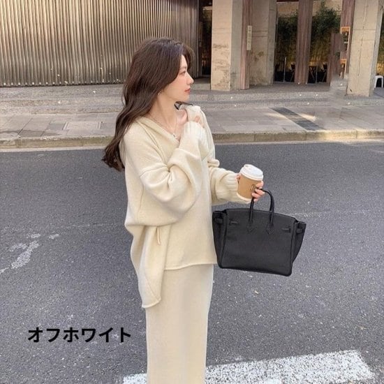 セットアップ レディース ニット フード付きパーカー ニットパーカー フーディ ニットスカート タイトスカート ニットアップ 長袖 無地 きれいめ カジュアル 2color 上下セット おしゃれ