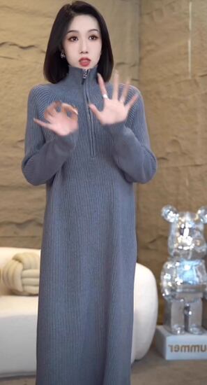 ニットワンピース レディース ワンピース ミドル丈ワンピース ハーフジップ 長袖ワンピース リブニット シンプル 無地 カジュアル お出かけ おしゃれ 秋冬 ラグランスリーブ 女性 ファッション