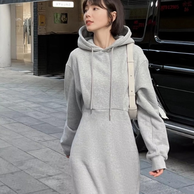 スウェットワンピース レディース ワンピース ロングワンピース フード付き 長袖 ハイウエスト スリムフィット シンプル 無地 カジュアル お出かけ おしゃれ ルームウェア 春秋 女性 ファッション